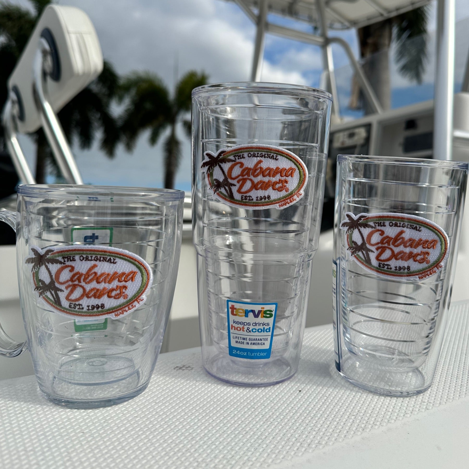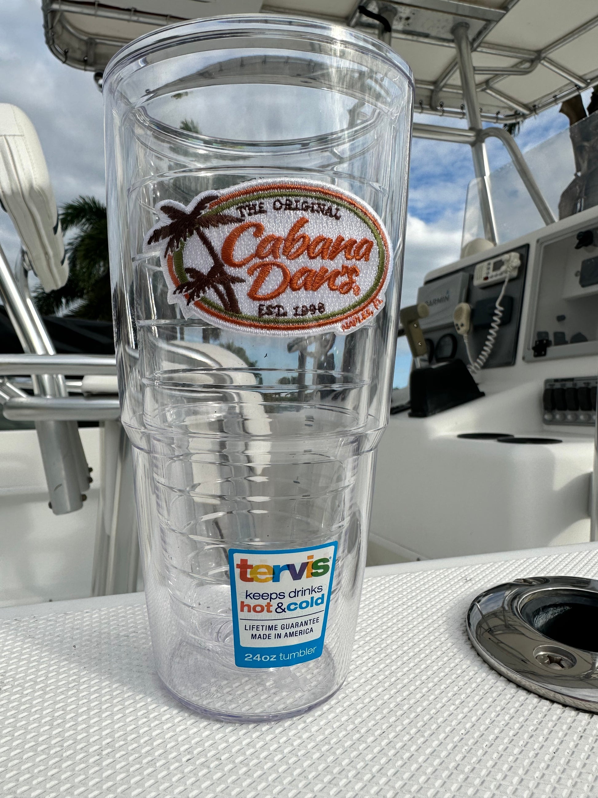 The Original Cabana Dan's 24 oz Turvis insulated tumbler with our classic Cabana Dan's embroidered logo patch. Great for keeping your cold drinks cold or warm drinks warm.